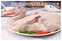 鸭肉是餐桌上的上乘肴馔,也是人们进补的优良食品,凡体内有热的人适宜食鸭肉,体质虚弱,食欲不振,发热,大便干燥和水肿的人食之更为有益,民间还传说,鸭是肺结核病人的圣药。冷加工是保鲜和保藏鸭肉的一种有效方法,它主要利用人工制冷的方法使净膛后的鸭体降温并使其在一定的低温下贮藏的过程。低温保藏鸭肉胴体是保证鸭肉不变质的最常用的方法。鸭肉冻藏期间胴体表面颜色逐渐变暗失去光泽和亮度,出现白斑,风味和味道发生异常变化从而影响消费者的购买情况。为了实现资源的合理的利用,减 少浪费,采用安全、高效的鸭肉冻藏保鲜方法,延长其货架期,华炬新产品研究所技术咨询委员会 技术人员现推荐一项冻藏鸭肉护色保鲜剂技术配方,使用该冻藏鸭肉护色保鲜剂技术产品后鸭肉冻藏后鸭肉胴体保持颜色鲜艳、鸭肉肉质保持原色、表面呈淡黄色,切面有光泽,肌肉显淡红色。风味纯正,有新鲜鸭肉该有的香气,无外源性气味,无异味,延长其货架期,是冻藏鸭肉的很好保存技术,符合国家食品卫生标准。现将该冻藏鸭肉护色保鲜剂技术配方介绍如下供研究参考:(311341 331653)