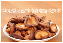 香菇蜜饯的加工方法步骤:选料→漂洗→烫煮→整型、冷浸糖→糖煮→烘干→包装的加工工艺流程,针对香菇蜜饯加工糖煮工艺的煮糖液保持长时间不发生变质、霉变,华炬新产品研究所技术咨询委员会科研人员现推荐一项香菇蜜饯防腐煮糖液技术配方,该技术产品的使用可显著地提高香菇蜜饯防腐煮糖液的防腐能力,加工的产品脯体饱满,口感柔滑清脆,酸甜可口,带有香菇芳香。现将该香菇蜜饯防腐煮糖液技术配方介绍如下供研究参考:(211471 221647)