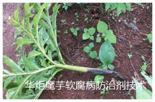魔芋软腐病俗称半边疯,是魔芋生产上的主要病害,在生长期和贮藏期都可发生,引起叶片、叶柄和球茎腐烂,与白绢病并发,危害更大,甚至可能绝收。魔芋软腐病病原为胡萝卜果胶杆菌胡萝卜亚种,病菌随带菌的病残体、土壤、未腐熟的有机肥以及病球茎越冬,初侵染菌源较多,多雨高湿,有利于软腐病流行,地势低洼、排水不良的田块病重。魔芋软腐病防治长期是魔芋生产中的一大难题,软腐病发生受多种因素的影响,尤其与农田环境条件密切相关,且侵染源广泛,从上世纪八十年代开始,魔芋研究者们就开始寻找各种控制魔芋软腐病的措施,