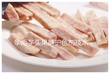 目前,芋头主要当作蔬菜鲜食,而以芋头为原料深加工的芋头食品主要有: 芋头淀粉、芋头粉丝、芋头果铺等。芋头果铺改变了目前市场上芋头加工产品稀少的现状,解决了芋头的产后出路,并带动芋头相关产业的发展,形成新的经济增长点,具有巨大的经济效益和社会效益,同时为芋头的增值提供一个很好的方法方案,亦为企业创造了更大的利润空间。 华炬新产品研究所技术咨询委员会科研人员现推荐一项芋头果脯护色剂技术配方,该技术产品对芋头果脯产品进行护色保风味,大幅度提高了芋头果脯产品的颜色等级和果脯产品风味,使芋头果脯不仅能够具有原果的颜色,而且还保持有原芋头果口味,从而使芋头果脯与同类果脯相比具有很明显的市场优势,该技术产品具有处理时间短,具有很好的护色效果,并具有使用量极少、方法简单、成本低、适合大规模生产应用的特点,现将该芋头果脯护色剂技术配方及使用方法介绍如下供研究参考:(211211 443373)