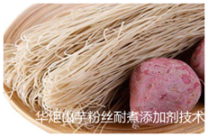 用山芋原料所制备的粉丝质量一般存在着耐煮性差、筋道不足,口感较差特点,华炬新产品研究所技术咨询委员会科技人员现推荐一项山芋粉丝耐煮添加剂技术配方,该技术产品的使用能够使得山芋淀粉浆液的浆膜强力、断裂伸长率和浆膜吸湿性显著增加,以此能够显著提高制成的粉丝的韧性和筋道,能够使得制成的粉丝更加耐煮、不易断、口感弹韧、滑爽,该技术产品符合食品卫生要求。现将该山芋粉丝耐煮添加剂技术配方介绍如下供研究参考:(211211 427677)