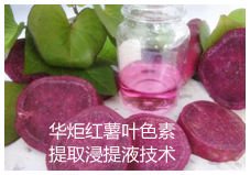 华炬新产品研究所技术咨询委员会科研人员现推荐一项红薯叶色素提取浸提液技术配方及方法,该技术产品的应用采用油冻法提取纯化红薯叶色素,提取充分,色素得率高且纯度高。该技术产品配方科学、使用效果好,操作性强、易于推广,具有良好的应用前景,现将该红薯叶色素提取浸提液技术配方及方法介绍如下供研究参考:(211211 427557)