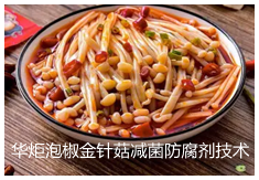 为了克服现有技术的不足而生产一种既能保持新鲜金针菇所具有的色、香、味、形及高膳食纤维和营养物质,又食用方便,安全卫生的泡椒金针菇,华炬新产品研究所技术咨询委员会科研人员现推荐一项泡椒金针菇生产减菌防腐剂技术配方,该技术产品的使用可以生产出有益消费者营养健康、色泽诱人、口味独特、携带方便的食品的同时还保证了食用安全,无毒无害、成本低、适合大规模生产应用的特点。现将该泡椒金针菇生产减菌防腐剂技术配方及实施例介绍如下供研究交流参考:(211471 321654)