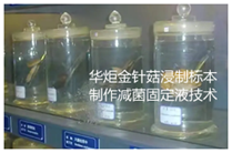 金针菇原色浸制标本不仅在教学科研中有着很重要的作用,而且在标本陈列、展示和艺术观赏等方面也有着重要的价值,由于金针菇植物体内含有的化学成分复杂,其化学变化规律难以掌握,给原色金针菇植物浸制标本的制作带来了很大的困难。目前,传统的金针菇原色标本制作存在着易挥发,容易对人体造成伤害的不良因素。为了解决现有技术中存在的金针菇浸制标本的有害试剂易挥发的缺点,华炬新产品研究所技术咨询委员会技术人员现推荐一项金针菇浸制标本制作减菌固定液技术配方,该技术产品便于对金针菇标本进行灭菌、消毒、防腐、存储,采用原料均为无毒、低毒试剂,在挥发时减小了对人力的伤害,具有很好的防腐作用,该技术产品配方技术先进、组方科学、制备工艺简单,使用安全、方便,且容易被接受,现将该金针菇浸制标本制作减菌固定液技术配方的配方组成、制备方法方法介绍如下供研究交流参考:(211471 321376)