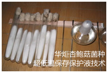 杏鲍菇菌种是杏鲍菇工厂化生产的重要因素,菌种内在质量的高低及遗传性状的优劣决定着食用菌的生产能力,是内因,在相同的栽培条件下,良种比一般品种可增产三成以上,甚至成倍增长,但选择出的优良菌种,如果管理不好,就会引起衰退,或被杂菌污染,造成减产,因此,保藏菌种和选育菌种具有同等重要的意义,在生产中,由于原种和栽培种数量大,不易保藏,菌种生产者通常以母种形式保藏,栽培前再进行扩接用于生产,杏鲍菇菌种通过保藏,适当控制其生长环境,现有菌种的保藏方法很多,常用的有低温保藏法、液体石蜡保藏法、麦粒保藏法、盐水保藏法等,对于生理特性变异快的蘑菇菌糸(2n)采用以上保藏方法需反复地斜面继代培养,保藏菌株遗传特性容易发生变化、劣化、,长期保存非常困难,保存效果差,不适合用于工厂化杏鲍菇生产用菌种长期保存。 华炬新产品研究所技术咨询委员会科研人员针对上述技术问题现推荐一项杏鲍菇菌种超低温保存保护液技术配方,该技术产品的使用使杏鲍菇菌种处于极缓慢生理代谢状态,使优良菌种不衰退,不变异,不死亡,不被杂菌污染,以保证其在生产上可以长期应用,保存多年,其优良遗传特性仍保持不变,值得推广应用, 现将该杏鲍菇菌种超低温保存保护液技术配方及方法介绍如下下供研究交流参考:(211471 324234)
