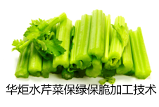 华炬新产品研究所技术咨询委员会科研人员现推荐一项水芹菜保绿保脆加工技术方法步骤,该技术方法使用浸泡保绿,热烫过程中使用cu2+溶液溶液保持水芹菜在热烫过程中一些酶不被氧化,保持原本的绿色;用溶液对处理好的水芹菜进行浸泡,然后使用进行保脆,使加工后的水芹菜保持新鲜食用时的风味,有效的保持了水芹菜的绿色,而且口感好,很好达到了食用新鲜水芹菜的标准,简单实用、卫生、高效,现将该水芹菜保绿保脆加工技术方法步骤及实例介绍如下供研究参考:(211311 226657)