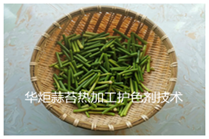蒜苔护色在餐饮行业是困扰人们多年的技术难题,针对蒜苔热加工后以及热加工后长时间放置保存后极易发黄变褐的现象,国内科研院所、大专院校的专家都在进行相关的研究,特别是在护色效果、有效期限和品质保证方面进行不懈努力来满足餐饮行业的普遍需求。