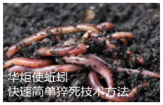 华炬新产品研究所技术咨询委员会科研人员现推荐一项使蚯蚓快速简单猝死技术方法,该技术方法克服上述不足之处,提供一种快速、简单、易操作的猝死蚯蚓的方法,不但提高了剖开蚯蚓的速度,而且提高了剖开蚯蚓的程度,确保大量的蚯蚓立刻处于猝死不扰动的状态,使机械化加工蚯蚓的操作能顺利进行,进一步加工得到地龙后,经检测总灰分为9.0%,现将该使蚯蚓快速简单猝死技术方法如下供研究参考:(311811 441441)