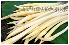 鲜藕尖由于采摘上市季节性强,时间短,从采摘地到市场运输保存难,非藕尖生产地的人很难吃得到新鲜藕尖,现市场上销售的藕尖除了藕尖生产地是新鲜藕尖直接销售外,其余地方销售的藕尖大多是采用先腌制贮存,后通过高盐进行加工,改变了鲜藕尖的新鲜、鲜亮、脆嫩的风味,特别是失去了鲜藕尖的光泽,鲜藕尖变黑、变暗,极大的影响了鲜藕尖的销售。华炬新产品研究所技术咨询委员会科研人员鲜推荐一项鲜藕尖护色液技术配方用于保护鲜藕尖的本来颜色,该技术产品配方科学,原料来源广,使用方法简单、护色效果好,价格低廉,便于用户接受使用,现将该鲜藕尖护色液技术配方介绍如下供研究参考:(211371  421687