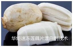 新鲜的莲藕容易变坏,不耐贮藏,用于加工成速冻莲藕片可实现对莲藕的综合利用,提高其经济价值和营养价值,速冻莲藕片的一般制作工艺为:原料选择、清洗、浸泡、清洗、切片、漂白、烫煮、冷风冷却、冷冻、包装、成品冷藏的加工工艺流程,华炬新产品研究所技术咨询委员会科研人员现推荐一项速冻莲藕片漂白剂技术配方,该技术产品的使用可使速冻莲藕片,别具风味、其口感更佳,具有莲藕特有的清爽,减少了莲藕的营养成分不流失,而且容易保存,更易贮藏,现将该速冻莲藕片漂白剂技术配方介绍如下供研究参考:(211371  423657