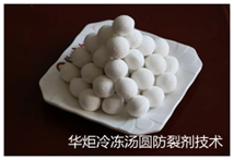但由于汤圆在规模化、产业化的生产过程中,其核心原料水磨糯米粉不像面粉有筋力,往往出现冷冻后的汤圆有明显的开裂、脱粉的现象,严重影响了汤圆的品质,因此,防止汤圆开裂的方法十分重要。华炬新产品研究所技术咨询委员会技术人员现推荐一项冷冻汤圆防裂剂技术配方,该技术产品的使用能有效增加糯米粉面团的粘度及筋力,使得糯米粉具有良好的保水能力和低温稳定性,制得的冷冻汤圆饱满不塌架,表皮光滑不渗水,组织紧密柔和,煮侯不浑汤,产品更软糯细腻,对冷冻汤圆加工过程和储存、物流、销售过程中由于水分散失和温度波动导致的破损率、冻裂率有很好的改善作用,同时能有效防止冷冻汤圆在冷藏过程中形成冰晶体,避免汤圆开裂。现将冷冻汤圆防裂剂技术配方介绍如下:(371241 321656)
