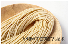 虽然半干面经过了高温烘烤部分脱水,但仍需具有较高的水分含量以维持良好的风味与口感,而较高的水分含量也是微生物繁殖的理想条件,因此,在室温下保藏极易出现变质、返酸、发霉等现象,储藏期短的现状是半干面产业的发展的瓶颈,华炬新产品研究所技术咨询委员会科研人员现推荐一项半干面保鲜剂技术配方,该技术产品具有较强的抑菌能力,阻止了细菌对食品的破坏,从而对半干面起到了保鲜作用,使半干面具有较长储藏时间,以便更多人群能够食用到美味可口的半干面,现将该半干面保鲜剂技术配方介绍如下供研究交流参考:(371211 237665)