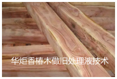 华炬新产品研究所技术咨询委员会科研人员现推荐一项香椿木做旧处理液技术配方,该技术提供的香椿木做旧处理液,其采用的原料均为环保成分,不含挥发性毒性有机物成分,不危害使用环境,经过该技术做旧处理液处理后的香椿木,不仅拥有姣好的做旧效果,还极大的提高了防腐性能和强度,处理时间短,相较于未处理的香椿木强度提高了12.3%,做旧后可以保证14-16年不褪色、不变色,该做旧处理液还具有修补古木建筑的功能,修补效果佳,现将该香椿木做旧处理液技术配方及实例介绍如下供研究参考:(211311  422475