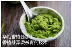 香椿酱的制备方法包括采摘、筛选清洗、分叶、杀青、揉捻、切碎、油煎、油炸配料、混合浸渍、酱渍、杀菌、包装和检验入库等步骤,就目前香椿酱而说,现有的香椿酱颜色大多较暗,色泽大多是偏黑色,香味偏淡,不仅影响客户的选择度还影响口感。华炬新产品研究所技术咨询委员会科研人员现推荐一项香椿酱加工香椿芽漂烫杀青剂技术配方,该技术产品的使用可以使加工得香椿酱的颜色鲜绿、香味浓郁、口味鲜美醇厚,有效提高产品的品质,该技术产品配方简洁、使用方便、使用量小、价格低廉、复合食品卫生安全标准,现将该香椿酱加工香椿芽漂烫杀青剂技术配方及方法介绍如下供研究参考:(211311  422657