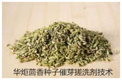 小茴香栽培是种子繁殖,但是常规方法在茴香种子催芽过程中,常存在催芽时间长,发芽率低,利用率低下,出苗不整齐等技术问题,针对上述技术问题,华炬新产品研究所技术咨询委员会科研人员现推荐一项茴香种子催芽搓洗剂技术配方,该技术产品能够快速去除茴香种子包衣外小毛刺及黏液,能使种子快速吸收营养分,能改善在催芽过程中的透气性,具有出芽率高,出芽快速,出芽整齐,芽苗健壮,催芽成本低,缩短茴香种子催芽时长等优点,现将该茴香种子催芽搓洗剂技术配方及方法介绍如下供研究交流参考:(371511 653233)