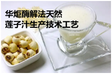 莲子汁为睡莲科植物莲的干燥成熟种子,祖国传统医学认为莲子有益肾固精、养心明目、收敛镇静、健胃止泄等功效,久食可强身旺神、延年益寿,现代实验研究和临床研究结果也表明:莲子能延长果蝇的平均寿命,降低果蝇脂褐素含量,证实了莲子具有抗衰老功能的说法;莲子还对糖尿病具有良好的治疗作用。莲子为睡莲科植物莲果实,它不仅营养丰富,而且还具有降压清火,生津养神,补肾强筋等保健功效,在我国有将莲子加冰糖煮食的习惯,在海外,如新加坡,马来西亚,台湾,香港等华人居住较为密集的国家和地区,也有煮食莲子的习惯,但莲子食用起来较为麻烦,若莲子加工成饮料,不仅使莲子食用方便,而且能大大促进其生产开发利用。传统的莲子汁生产工艺通常由干莲经浸泡、粉碎,过滤等工序制成,存在的缺点一是工效低,二是色泽暗淡,风味不佳。长期以来,人们食用莲子需经过长时间浸泡后蒸煮成莲子汤,口味单调,费工费时。近年来,开始出现以莲子为主要原料的食品,如银耳莲子罐头、莲子蜜饯、莲子泥等,但国内外均未有以莲子为主要原料生产罐(瓶)装莲子汁饮料的报道。与其它植物性蛋白饮料相比,莲子汁饮料的制造有其特有的难度:莲子除了含有较高的蛋白质之外,淀粉的含量相当高,淀粉加热后糊化,冷却后又凝结成块,若不加处理会严重影响成品品质,若采用物理方法(如过滤、离心沉淀)除去淀粉,则会降低成品的营养价值并对其风味有所影响。