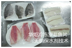 综上所述,研究开发一种安全无害、保持冷冻罗非鱼片原有品质的无钠保水剂及其使用方法显得很有必要。华炬新产品研究所技术咨询委员会科研人员现推荐一项提冷冻罗非鱼片无钠保水剂技术配方,该技术产品的使用既能有效提高罗非鱼片在浸泡加工过程中的持水性又能满足出口市场对低钠食品需求的冷冻罗非鱼片无钠保水剂,保持鱼片自然的色泽,改善储存过程中发黄干耗的现象,延长保质期,满足出口市场对低钠食品的需求。现将该冷冻罗非鱼片无钠保水剂技术配方介绍如下供研究参考:(341241 361353)