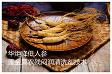 华炬科技新产品研究所技术咨询委员会技术人员现推荐一项降低人参重金属农残闷润清洗剂技术配方,该技术产品代替常用的水对清洗后的人参原料进行闷润清洗处理。在控制温度、时间的情况下有利于促进人参液泡内相关酶活性的恢复,加速其对所在细胞内重金属、农残等有害物质的隔离、外排代谢,最终达到人参内重金属、农药残留的降低、清除,现将该降低人参重金属农残闷润清洗剂技术配方介绍如下供研究参考:(441221 621233)