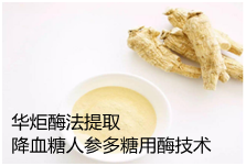华炬科技新产品研究所技术咨询委员会科研人员现推荐一项酶法提取降血糖人参多糖用酶技术配方及方法,该技术采用汽爆技术将人参粉碎,药物粒径越小,其表面积越大,有助于药物有效成分的溶出,同时由于药材细胞的破壁,细胞内各类有效成分均呈释放状态,缩短提取时间。采用该生物酶酶可以降解人参中的木质素,促进植物中活性成分的释放,进一步提高提取效率,采用生物酶技术与高压脉冲电场结合,提高了酶制剂活性,加速了酶解反应速度,快速、高效地促进人参中总皂苷物质溶出,现将该酶法提取降血糖人参多糖用酶技术配方及方法实例介绍如下供研究参考:(441221 625534)