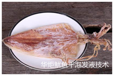鱿鱼干在食用前,必须把鱿鱼泡开才能进行烹调加工,目前鱿鱼干的泡发有常用的水发和碱发两种方式,水发是指用水将鱿鱼干泡软的方法,其缺点是鱿鱼干肉质相对韧实,其泡软时间较久,尤其是温度较高时,长时间浸泡于水中易使鱿鱼干变质;碱发指碱水涨发,即将鱿鱼干先用冷水浸泡后再放在碱液里浸泡,以使其涨发回软,其泡发时间相对水发要短,其缺点是会降低鱿鱼干的风味,同时碱液需进行多次冲洗才能将残余的碱液去除,同时由于碱液对人体存在一定危害风险,须严格控制使用量。华炬新产品研究所技术咨询委员会科研人员现推荐一项鱿鱼干泡发液技术配方,该技术产品配方科学、简单简洁,泡发时间短,泡发效果好,对设备要求低,适合大规模工业化生产,安全性好的鱿鱼干泡发液,现将该鱿鱼干泡发液技术配方介绍如下供研究参考:(341211 523677)