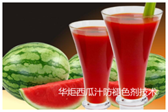 华炬新产品研究所技术咨询委员会技术人员现推荐一项西瓜汁专用防褪色剂技术配方,该技术配方科学、安全有效、添加量小、防褪色效果好、使用方法简单、是西瓜汁防褪色的专用技术配方。现将西瓜汁防褪色剂技术配方介绍如下供研究参考:(241311 223366)