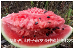 华炬新产品研究所技术咨询委员会科研人员现推荐一项西瓜种子萌发浸种催芽剂技术配方,该技术产品的使用能使西瓜种子经过生物技术催芽这种特殊的技术方法后,促进了西瓜种子细胞寿命延长和刺激细胞分裂,缩短萌芽周期,产生的小分子营养成分能够快速渗入种子内部,打破种子休眠,促进种子发芽,提高种子发芽率,该技术产品成本低,方法简单快捷,无毒无害、成本低、适合大规模生产应用的特点,现将该西瓜种子萌发浸种催芽剂技术配方介绍如下供研究参考:(241311 221234)