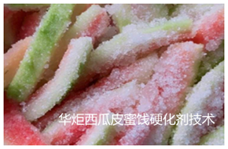 西瓜为葫芦科植物,一年生蔓生藤本,中国是世界上最大的西瓜产地,西瓜堪称盛夏之王,清爽解渴,味道甘味多汁,是盛夏佳果。西瓜皮,别名西瓜翠衣,西瓜的外层果皮,富含维生素C、维生素E。每年夏季到来,各地都有大量西瓜上市,食品加工厂可把西瓜加工成西瓜汁或西瓜酒,这样就会有大量西瓜皮作为副产品而被废弃。西瓜皮经过一定的加工工艺处理后,利用西瓜皮加工成便于携带、容易保存,口感又好,让人们爱吃的休闭蜜饯,使西瓜皮变废为宝,有效地解决了西瓜皮对环境造成污染的问题,还增加了经济收入。而西瓜皮柔软多汁在加工西瓜蜜饯过程中一个重要的工艺就是西瓜皮蜜饯硬化技术,华炬新产品研究所技术咨询委员会科研人员现推荐一项西瓜皮蜜饯硬化剂技术配方,现介绍如下供研究参考:(241311 223673)