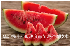 华炬新产品研究所技术咨询委员会科研人员现推荐一项提升西瓜甜度育苗浸种剂技术配方,该技术产品在西瓜播种前对种子进行处理,不但有效提高种子的细胞代谢能力,显著提高出苗率,加速西瓜幼苗的生长发育,而且能够有效增强其抗病抗旱能力,利于壮苗的培育;配合育苗期间进行补光处理并根施营养液,增强光合作用能力,并有足够健壮、无病虫害为害的功能叶,有促进幼苗茎杆的横向生长,促进生物量的积累,提高幼苗的健壮度,有效增强移栽后幼苗对养分的吸收利用能力,促进营养物质的合成,使得有机营养积累多产量高、糖分足,现将该提升西瓜甜度育苗浸种剂技术配方介绍如下供研究参考:(241311 221237)