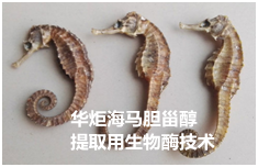 华炬新产品研究所技术咨询委员会科研人员现推荐一项海马胆甾醇提取用生物酶技术配方及方法,该技术是一种高效性和选择性、操作简便、产率高、副产物少、可工业化实现的提取胆甾醇的方法。采用生物酶酶法处理原料,实现了植物破壁,有效成分充分溶出,同时又避免加热,从而可有效避免胆甾醇成分的破坏。采用酶法—超声破壁法提取胆甾醇,具有高效、溶液有效成分含量较高、抗氧化性较强的优点,现将该海马胆甾醇提取用生物酶技术配方及方法及实例介绍如下供研究参考:(341611 523645)