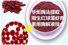 华炬新产品研究所技术咨询委员会科研人员现推荐一项酶法提取雨生红球藻虾青素用酶解液技术配方及工艺,该技术采用雨生红球藻粉为原料,采用酶法破坏雨生红球藻的细胞壁结构,然后再用溶剂提取虾青素,取得良好的提取效果。相比其它利用酸或碱进行细胞破壁的方法,酶解提取法具有操作温度低、污染少、成本低、提取率高等方面的优点,易于实现绿色工业化生产,现将该酶法提取雨生红球藻虾青素用酶解液技术配方及工艺及实例介绍如下供研究参考:(341511 634687)