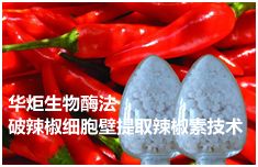 华炬新产品研究所技术咨询委员会科研人员现推荐一项生物酶法破辣椒细胞壁提取辣椒素技术方法,该技术采取生物酶法提取辣椒素与传统方法相比设备要求低,操作工艺简单,生产成本低,无污染,适于工业化生产,为一种理想的辣椒素提取方法,现将该生物酶法破辣椒细胞壁提取辣椒素技术方法及实例介绍如下供研究参考:(211341 217537)