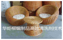 目前,柳编制品的清洗剂通过添加高分子有机物化合物,提高清洗能力,达到清洗的目的。这种清洗剂不仅对于缝隙中的污渍很难擦洗干净,而且长期使用会对柳编制品表面的清漆造成破坏,致使表面氧化,不利于美观和长期使用。华炬新产品研究所技术咨询委员会科研人员现推荐一项柳编制品高效清洗剂技术配方,该技术产品的使用充分利用清洗添加剂中比表面积大、吸附速度快的的特点可以快速吸附缝隙中残留的污渍,可以有效的降低溶液表面张力,提高清洗能力,同时清洗结束后,清洗剂中的添加剂还可以分散在柳编制品的清漆表面,提高其耐老化性,延长使用时限。现将该柳编制品高效清洗剂技术配方介绍如下供研究参考:(271211 541546)