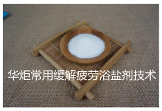 华炬新产品研究所技术咨询委员会科研人员现推荐一项常用缓解疲劳浴盐剂技术配方,该技术产品的使用可在水中的溶解后,能提供保温和杀菌作用,沐浴后具有清洁皮肤软化角质层的作用并促进血液循环,产生消除和缓解疲劳的效果。具有使用量少、方法简单、无毒无害、成本低、自己配制自己使用,亦适合大规模生产应用的特点。现将该常用缓解疲劳浴盐剂技术配方及实例介绍如下供研究参考:(411611 211252)
