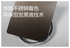 华炬新产品研究所技术咨询委员会科研人员现推荐一项不锈钢着色环保型发黑液技术配方,该技术产品环保型发黑液, PH值为2.5-3.0,发黑时间为5-7mins,使用温度为常温,本剂具有与基体结合力强、耐腐蚀、生产简单、常温使用、不污染环境等优点,现将该不锈钢着色环保型发黑液技术配方及实例介绍如下供研究参考:(841133 151565)