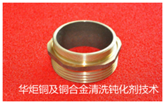 目前,铜以及铜合金清洗钝化工艺流程一般为:刷洗脱脂→冷水冲洗→酸洗→冷水刷洗→热水冲洗→钝化处理→烘干等工序。华炬新产品研究所技术咨询委员会技术人员现推荐一项铜及铜合金清洗钝化剂技术配方,该技术产品设计合理,钝化效果好,操作简单,节约成本,对环境污染少,清洗钝化得到的铜及铜合金表面质量好。现将该铜及铜合金清洗钝化剂技术配方介绍如下供研究参考:(611341 473565)