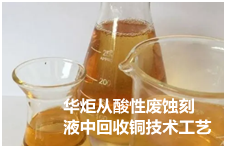 华炬新产品研究所技术咨询委员会科研人员现推荐一项从酸性废蚀刻液中回收铜技术工艺方法,该技术从酸性废蚀刻液中回收铜的方法,能将铜从酸性废蚀刻液中选择性分离,工艺简单,分离效果好,电解出来的金属铜纯度高,含量氧量低。能提高回收铜的纯度和质量,提高经济效益,以减少污水排放量,现将该从酸性废蚀刻液中回收铜技术工艺方法及实例介绍如下供研究参考:(811511 541316)