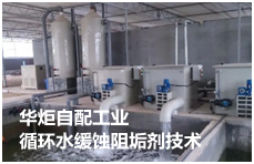华炬新产品研究所技术咨询委员会科研人员现推荐一项自配工业循环水缓蚀阻垢剂技术配方,该技术产品具有1、对环境无污染、无毒性;2、生产设备简单,均为物理反应,不需要化学反应装置;3、使用方便,工业循环冷却水或锅炉水口处加入即可;4、用量少,需要保持水pH 8.0~10.0的适用范围即可;5、含有少量的磷化物,可以生成磷化铁,在金属表面形成一层有抑制作用的保护膜,达到最佳防蚀功效,对管道具有良好的保护作用,外排的磷化物含量低于1mg/L,完全符合环保排放标准,对环境无污染,现将该自配工业循环水缓蚀阻垢剂技术配方及实例介绍如下供研究参考:(541411 421371)