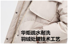 华炬新产品研究所技术咨询委员会科研人员现推荐一项疏水耐洗羽绒处理技术工艺方法,该技术先利用前处理液对羽绒进行微蚀处理,增加蛋白纤维的反应活性,在交联改性处理过程中利用戊二醛与羽绒纤维接枝并引入纳米硅,使得纳米硅可牢固的结合在纤维上,较之直接添加纳米材料更为安全高效,同时纳米硅多孔的结构不会影响羽绒的保暖透气性,反倒改善了羽绒纤维疏水性,提高耐洗刷能力,同时具备优良的吸附性,降低羽绒的飘散。工艺与现有技术相比更为高效,且生产工艺简单,原料健康环保,改善了传统羽绒吸水易飘散的缺陷,可制得轻薄保暖的羽绒服饰,现将该疏水耐洗羽绒处理技术工艺方法及实例介绍如下供研究参考:(311341 421473)