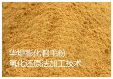 华炬新产品研究所技术咨询委员会科研人员现推荐一项膨化鸭毛粉氧化还原法加工技术工艺,该技术是利用氧化还原法打开鸭羽毛粉中角质蛋白分子链间的氢键的羽毛粉的加工处理方法。该膨化鸭毛粉加工处理方法简单,易操作,使造成环境污染的大量丢弃物鸭毛,成为动物容易吸收的优质蛋白质资源,它不仅可以代替进口鱼粉,部分解决动物饲料蛋白质短缺的问题,还可以解决环境污染问题,鸭毛中的营养成分最大限度地被保存在产品中,即满足了各种动物对蛋白质需求,又保证了动物的饲喂品质,而且还降低了动物饲料的成本。现将该膨化鸭毛粉氧化还原法加工技术工艺及实例介绍如下供研究参考:(311341 421335)