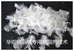 鸭羽绒包括鸭绒或者是鹅绒从动物身体内拔出来制作羽绒的时候需要对鸭羽绒进行脱脂处理,这样不仅能减少鸭羽绒的异味而且还能避免油脂招致螨虫,滋生细菌等,现在的脱脂剂存在脱脂效果不理想的问题,使得羽绒中依然含有油脂。为了解决上述问题,华炬新产品研究所技术咨询委员会科研人员现推荐一项鸭羽绒专用脱脂剂技术配方,该技术产品是一种鸭羽绒专用脱脂剂,脱脂效果好,避免羽绒滋生细菌。该脱脂剂最大限度的提高了脱脂的效果,配方合理、用料少,成本低廉,脱脂效果理想,对鸭羽绒没有损伤,现将该鸭羽绒专用脱脂剂技术配方实例介绍如下供研究参考:(311341 421585)