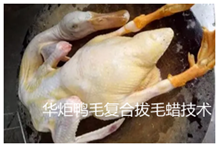 华炬新产品研究所技术咨询委员会科研人员现推荐一项鸭毛复合拔毛蜡技术配方,该技术产品是由石蜡、多种食品级添加剂调配而成的一种新型鸭毛复合拔毛蜡,具有无毒、无味、无污染、拔毛率高等特点,是替代以往鸭毛拔毛的理想产品,该技术产品通过在鸭毛拔毛蜡中添加食品级的稳定剂增强了拔毛蜡的热稳定性,通过抗氧化剂的加入使得到的拔毛蜡的化学稳定性更好,保存时间更长,有利于拔毛蜡的反复使用,且该鸭毛拔毛蜡通过添加食品级的添加剂,保证了拔毛蜡使用安全性,具有能耗低,三废少,成品率高等优点,现将该鸭毛复合拔毛蜡技术配方及制备方法介绍如下供研究参考:(311341 421326)