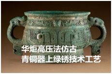 华炬新产品研究所技术咨询委员会科研人员现推荐一项高压法仿古青铜器上绿锈技术工艺,该技术工艺仿古青铜器上绿锈方法及其药剂配方,采用高压法可以使青铜器表会生成 片状或点状的绿锈,使其从外观上看起来想古制青铜器,提高了新制青铜器的价 值,符合市场需求,现将该高压法仿古青铜器上绿锈技术工艺及实例介绍如下供研究参考:(611341 381317)