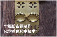 华炬新产品研究所技术咨询委员会科研人员现推荐一项仿古铜制作化学着色药水技术配方及方法,该技术仿古铜的制作方法操作简单、成本低廉、仿古效果逼真。制得的仿古铜承传统建筑之典雅,又不失材质的坚固,且防水、防腐,将精湛的铜工艺与现代科技完美结合。以高端材料工艺和超前的设计理念,采用古典材质,全新设计,融大气、尊崇、典雅于一体,营造出独特的空间铸体效果,能够令有限的空间发挥无限的气度,现将该仿古铜制作化学着色药水技术配方及方法及实例介绍如下供研究参考:(611341 381344)