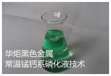 华炬新产品研究所技术咨询委员会科研人员现推荐一项黑色金属常温锰钙系磷化液技术配方,该技术产品磷化液寿命长,无废水,不会发生真菌繁殖而造成磷化膜作为涂层底层时涂层附着力明显降低的问题;磷化质量有较大的提高,磷化方式多,磷化膜质量超过GB/T 6807—2001规定的喷涂前磷化质量要求。可采用刷、浸、喷等磷化方式进行磷化;节约能源,采用5~45 ℃(最低3 ℃)浸泡磷化,最大程度地节约能源和准备时间;节约材料;环保与使用安全;操作简单,磷化工艺控制参数宽、方式多,磷化液稳定,25 ℃以上喷淋磷化的磷化时间为1 min~2 min,常温下浸泡磷化的磷化时间为5 min~15 min(磷化时间延长至24 h,磷化膜质量亦很好,磷化时间长虽不影响工件的磷化膜质量,但影响磷化液的寿命且沉渣增多),磷化温度为3~45 ℃,磷化后的工件不水洗而直接烘干或自然干燥。可采用磷化方式为刷、浸、喷或其组合。