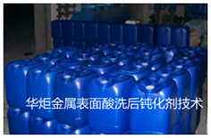 华炬新产品研究所技术咨询委员会技术人员现推荐一项金属表面酸洗后钝化剂技术配方,该技术产品是一种钝化效果好、使用方便、成本低廉、钝化膜稳定的钝化药剂,金属经过该技术产品处理后,金属表面形成了致密的钝化膜,处于相对稳定的状态,不易产生生锈、不易被刺激性成分所腐蚀,现将该金属表面酸洗后钝化剂技术配方介绍如下供研究参考:(841133 141638)