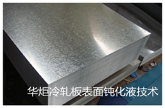 华炬新产品研究所技术咨询委员会科研人员现推荐一项冷轧板表面钝化液技术配方,该技术产品的应用克服了酸洗及其后处理的技术比较复杂,成本很高,酸洗及其后处理的工艺段很长的技术问题, 该技术产品钝化液可替代传统的冷轧涂油工艺,并且耐腐蚀性能优异,比防锈油效果好,冷轧板表面为工件原有的金属光泽,无发黑发暗现象,工件表面有连续均匀致密的一层膜,工件的防锈期可达八个月以上,现将该冷轧板表面钝化液技术配方介绍如下供研究参考:(841133 141662)