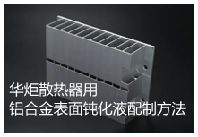华炬新产品研究所技术咨询委员会科研人员现推荐一项散热器用铝合金表面钝化液配制方法,该技术产品处理液由于不含六价铬及氟离子,不含剧毒的铁氰化钾,对环境没有污染;且处理液成份简单,易于控制,不含易分解成分,工艺稳定,该技术所生成的保护膜为金黄色,色泽均匀,具有优良的表面质量。该技术所制备的保护膜为层片状、致密、纳米氧化物薄膜,因而具有优越的耐蚀性能,该技术原料易得,成本低,适于工业化生产,现将该散热器用铝合金表面钝化液配制方法及实例介绍如下供研究参考:(871621 341345)