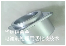 华炬新产品研究所技术咨询委员会科研人员现推荐一项铝合金电镀前处理用活化液及技术工艺,该技术产品通过对活化液组分的调整,很好的利用化学试剂的化学特性,可在铝基表面形成一层附着良好的薄砂面,使得随后电镀处理所得膜层的结合强度高,并能有效的控制后续电镀速度和保护基材不被过腐蚀。并且本发明活化液成本低,效率高,操作条件好,具有较好的性价比。该工艺采用的 活化液通过对组分的调整,可以克服现有技术中的缺陷,提供性能好的活化膜,为后续电镀打下良好的基础,现将该铝合金电镀前处理用活化液及技术工艺介绍如下供研究参考:(611311 571583)