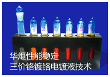 华炬新产品研究所技术咨询委员会科研人员现推荐一项性能稳定三价铬镀铬电镀液技术配方,该技术产品电镀液中不含六价铬等有毒物质,所述的硫酸铬能提供 Cr3+离子,因此实现了电镀液清洁生产,便于废水处理;加入乙硫氮或硫脲作为 除杂剂,使本技术电镀液性能稳定,加入糖精钠和乙烯基磺酸钠,使电镀后镀 层的外观青白美观,抗腐蚀性能佳,现将该性能稳定三价铬镀铬电镀液技术配方及实例介绍如下供研究参考:(611511 235674)