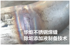华炬新产品研究所技术咨询委员会科研人员现推荐一项不锈钢焊缝除垢添加液制备技术方法,该技术操作简单,除垢效果好,同时不腐蚀不锈钢 的表面,保持不锈钢的光泽度;而且不锈钢焊缝除垢添加液能重复使用,对皮 肤接触无伤害,低碳环保,节约成本。是一种既能清除 焊缝处黑色沉结物又不腐蚀不锈钢,对人体无害且不污染环境的不锈钢焊缝除 垢添加液及其制备方法,现将该不锈钢焊缝除垢添加液制备技术方法及实例介绍如下供研究参考:(841141 171316)